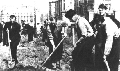 Blagoustrojstvo territorii instituta. Sleva - S.A.