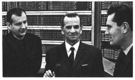 s S.A. Lebedevym uchastniki razrabotki V.A. Ivanov (sleva) i V.I. Semeshkin