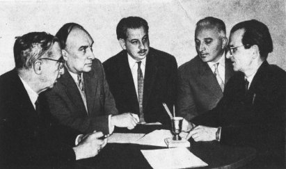 Pervoe detishche S.A. Lebedeva - M|SM. Za pul'tom L.N. Dashevskij (sprava) i S.B. Pogrebinskij (Kiev, 1951 g.)