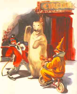 одеялами и приемником. И трое белых медвежат в клетке, которые жалобно